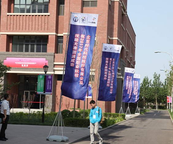 時(shí)代宣傳旗飄揚(yáng)在大賽演示中心