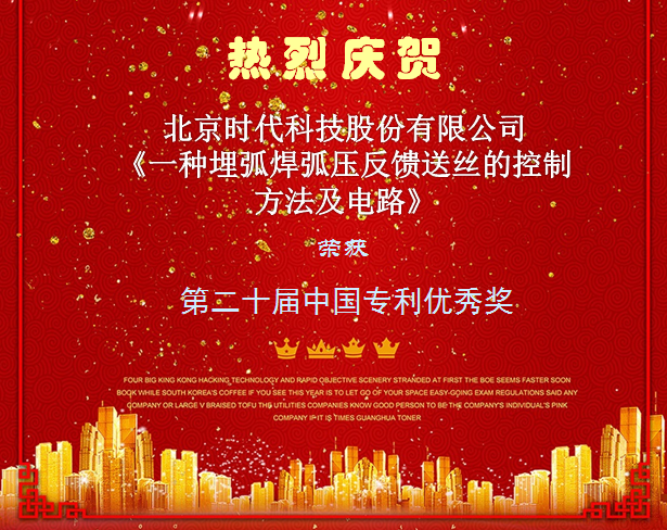 國家知識產(chǎn)權局于2018年12月26日發(fā)布“關于第二十屆中國專利獎授獎的決定”,北京時代科技股份有限公司專利《一種埋弧焊弧壓反饋送絲的控制方法及電路》榮獲第二十屆中國專利優(yōu)秀獎。