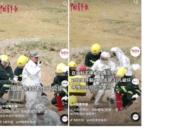 據(jù)《中國青年報》報道,9月19日西藏軍區(qū)青藏兵站某管線大隊組織實戰(zhàn)化輸油管線鋪設(shè)搶修演練。在油料不停輸情況下對焊縫開裂,單片穿孔,打孔破壞等情況導(dǎo)致的泄露點,官兵們采用補片焊接,管卡封堵,帶油焊接的方式對管線漏點組織搶修。 演練使用的時代焊機(jī)非常搶鏡,焊接設(shè)備也能守護(hù)邊防,我驕傲,我自豪!!!